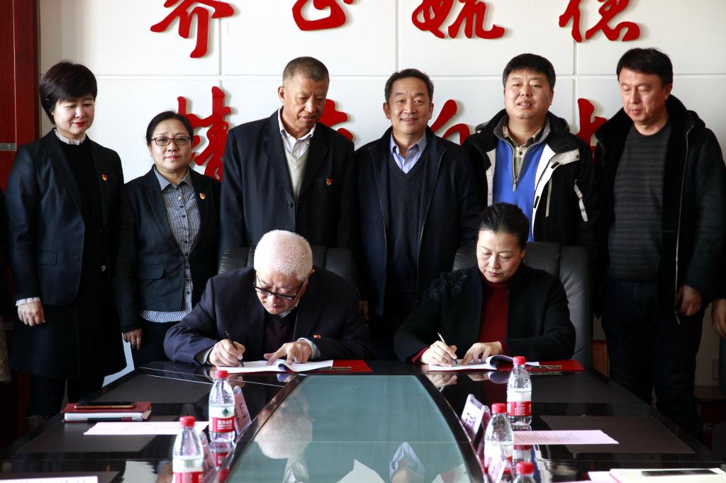 签约仪式上,校长陈桂芝代表学校与黑龙江运建集团董事局主席梁文第共同签署了校企战略合作协议。