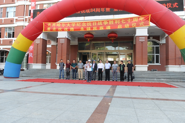 校党委书记李海红,党委副书记盖元臣,党委宣传统战部部长王晓梅,党委宣传统战部副部长孟宪国,党委宣传部副部长何强,文学与历史文化学院党委书记张振民,黑龙江省政府参事、原齐齐哈尔市政协副主席、江桥抗战研究会会长伊忠义,齐齐哈尔市委宣传部副部长覃华,齐齐哈尔市民革市委副主委、江桥抗战研究会副会长刘兴明,齐齐哈尔市社科院研究员、江桥抗战研究会秘书长孙文政等出席启动仪式。启动仪式由文学与历史文化学院副院长肖国栋主持。