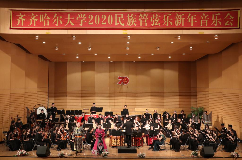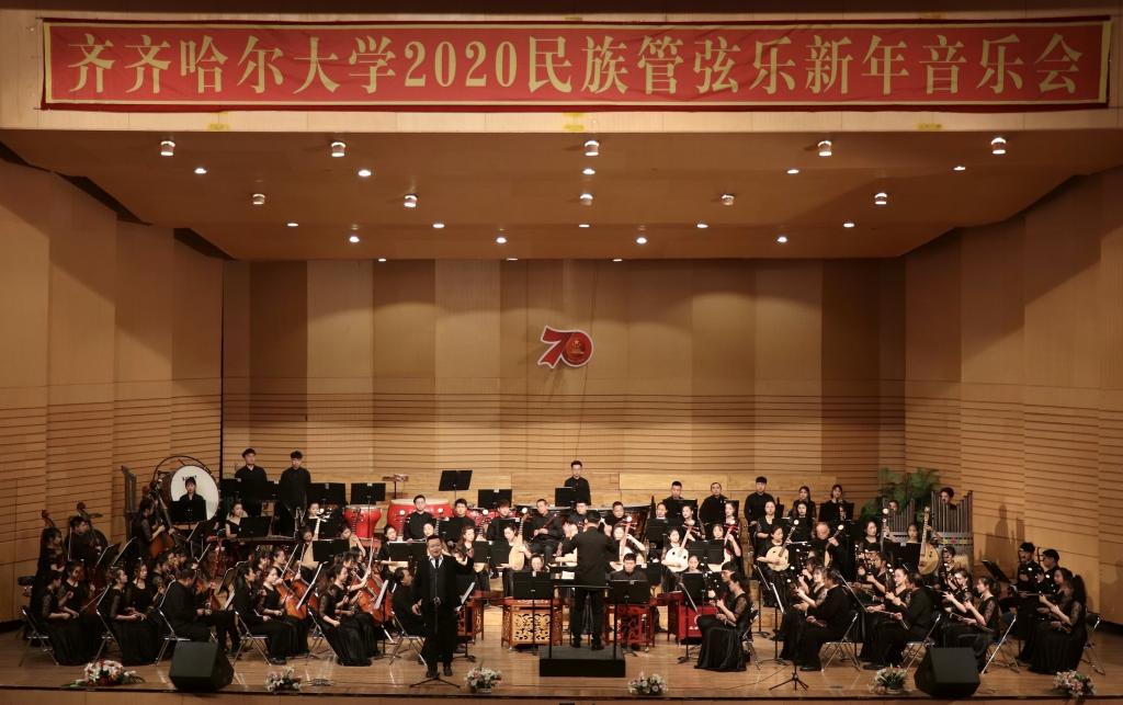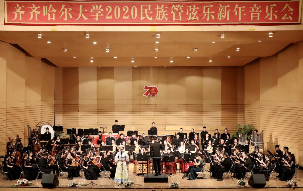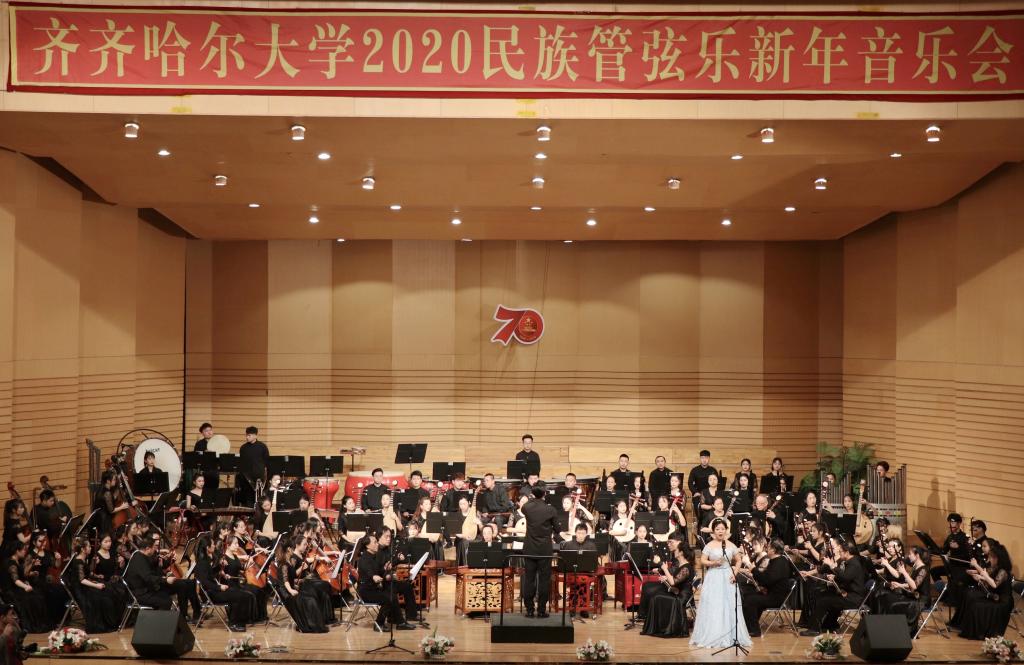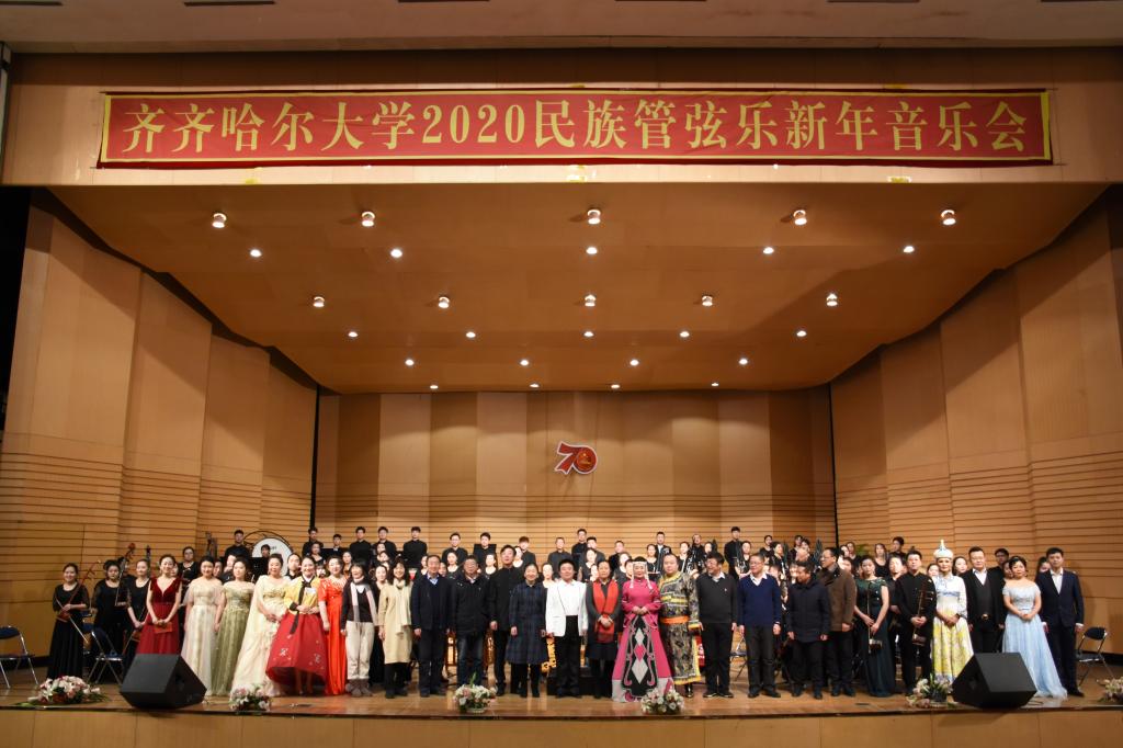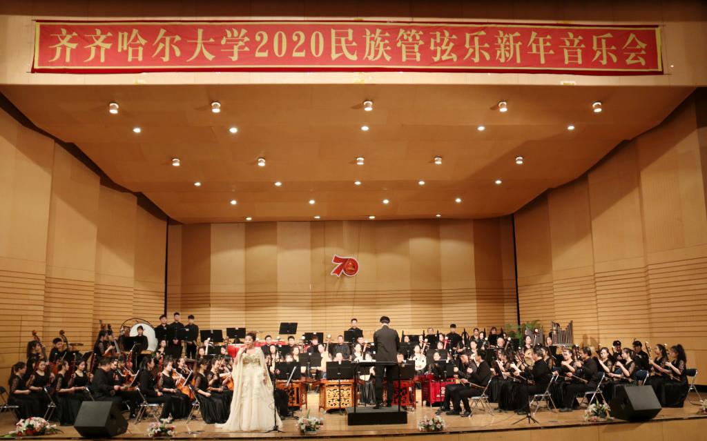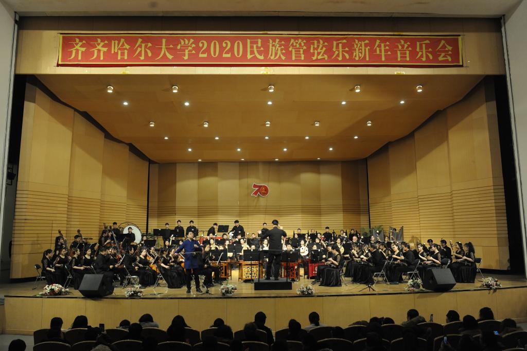为喜迎2020年的到来,12月26日晚,学校在音乐厅举办了2020民族管弦乐新年音乐会。校党委书记、校长陈桂芝,校党委副书记齐宏伟、校党委副书记张文治、副校长李英杰、纪委书记姜国庆、副校长张树军、副校长吕厚均等出席音乐会,齐齐哈尔医学院党委副书记崔光成、纪委书记刘彦辉和部分兄弟院校部门负责人应邀出席了音乐会,与鹤城各界音乐爱好者及sunbet申搏近千名师生共同观看了音乐会。