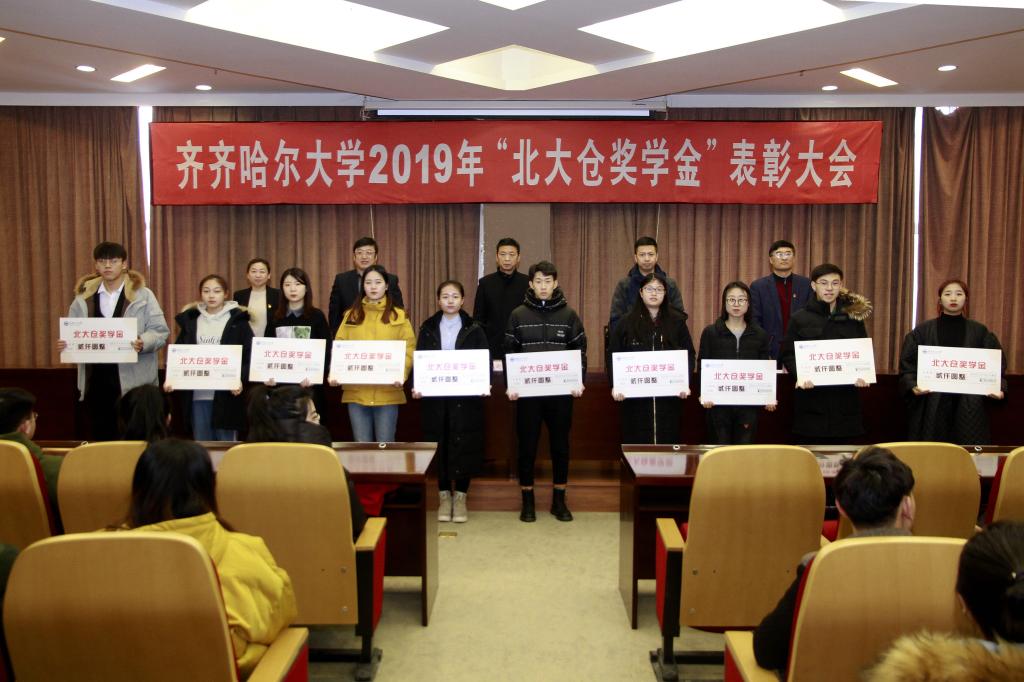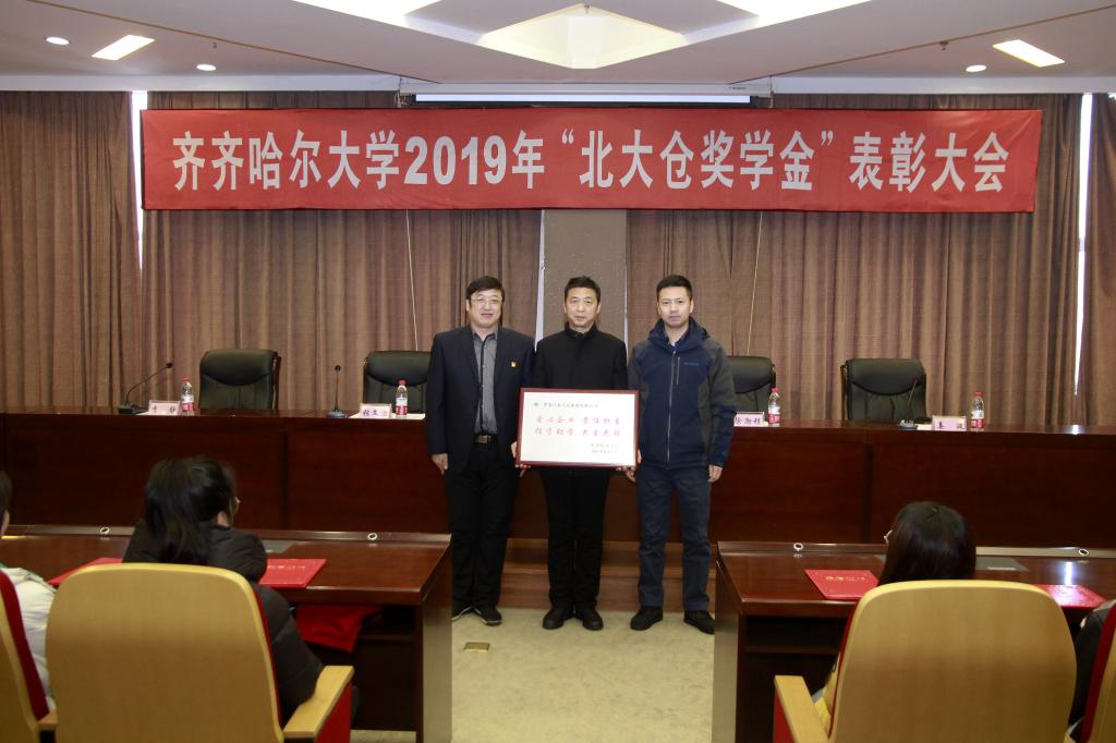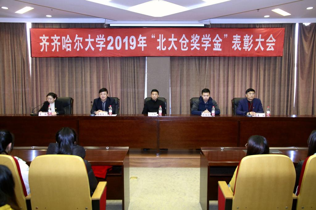 会上,姜波宣读了《关于命名表彰2018-2019学年度北大仓奖学金获得者的决定》(齐大发字[2019]69号)。