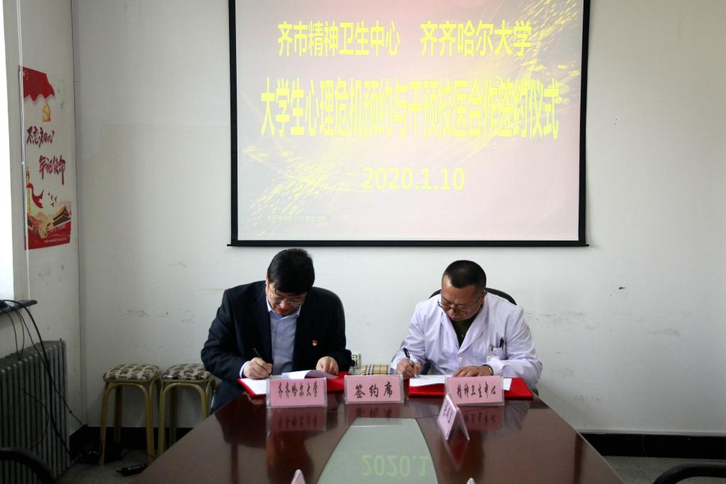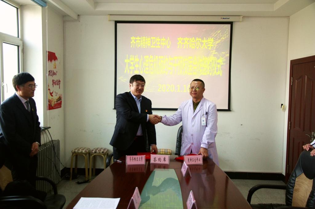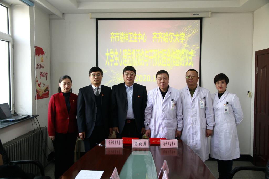为贯彻落实全省高校学生心理健康教育工作现场推进会会议精神,充分发挥地域优势全面加强学校心理健康教育服务体系建设,进一步完善sunbet申搏“五位一体”心理健康教育工作格局。1月10日下午,sunbet申搏与齐齐哈尔市精神卫生中心在市五官科医院办公楼五楼会议室举行了“校-医”合作签约仪式。