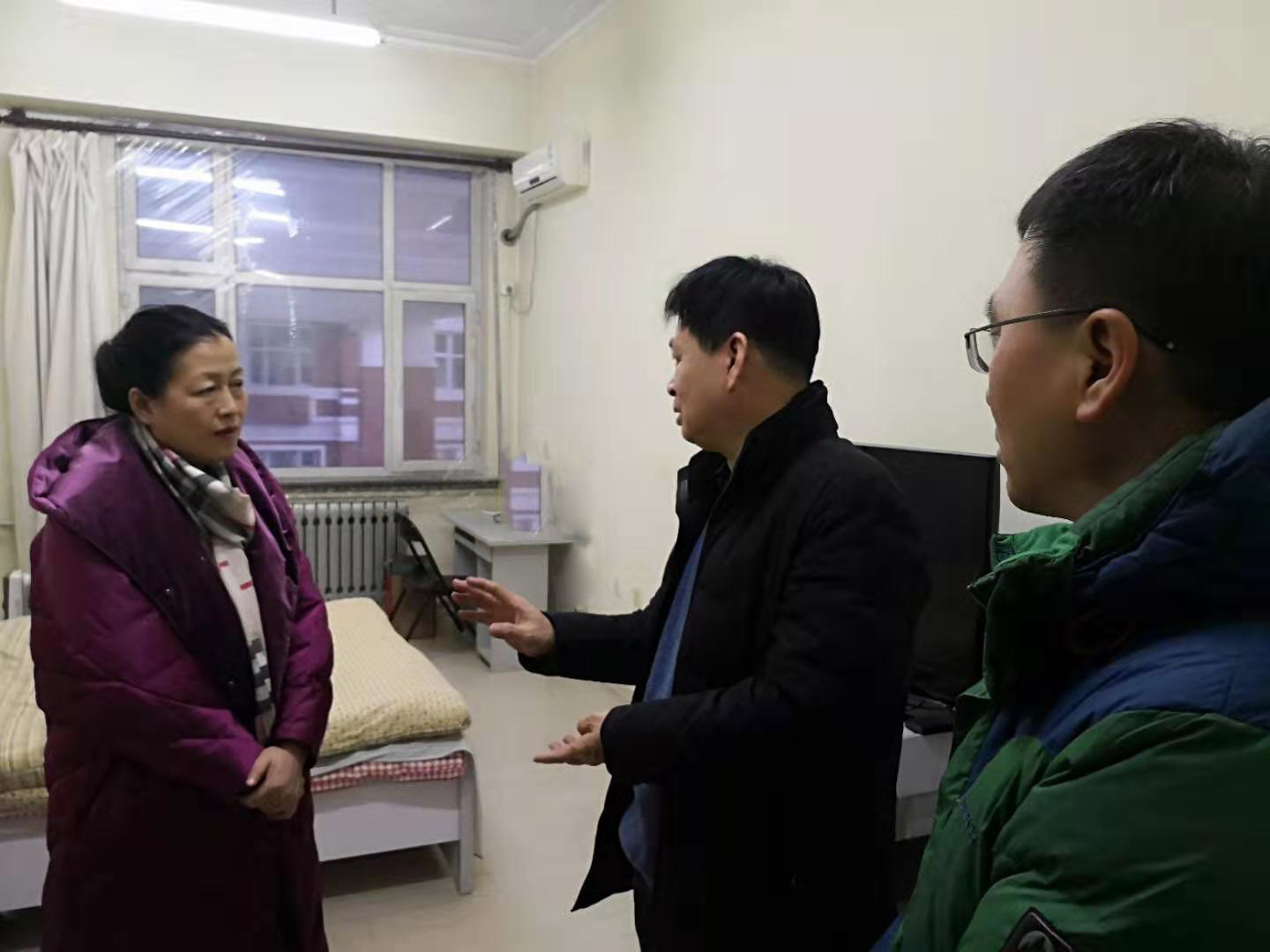 下午5点,校党委书记、校长陈桂芝、工会主席陶佰睿和部分防控工作领导小组成员走访校园110服务中心、学校总值班室、财务处、中区变电所、中区锅炉房、校卫生所等地,看望慰问在除夕坚守岗位的一线员工并送上慰问品,详细了解了学校节假日期间学校重要岗位人员值班值守情况,并对新型冠状病毒感染肺炎疫情防控工作落实情况进行了检查和指导,特别是重点察看了发热门诊和隔离宿舍等重点部位以及红外测温仪、消毒药品和医务人员防护装备等重要设施的部署落实情况。她代表学校党委感谢大家为保障学校春节期间正常运转的辛勤付出,鼓励全体值班人员一定发扬同舟共济的精神,坚守岗位,加强应急值守,全力做好保障工作,确保学校安全工作和各项疫情防控措施有效落实,全力保障学校安全和师生健康。