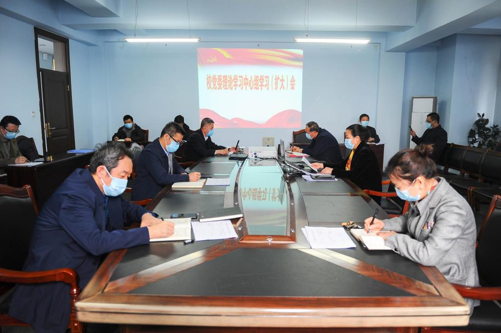 5月12日下午,学校召开党委理论学习中心组学习(扩大)会,校党委常委在办公楼519会议室出席会议,全校副处级以上干部通过企业微信在线参加会议,会议由校党委书记、校长陈桂芝主持。
