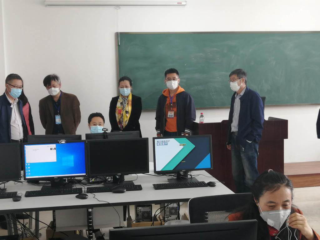 陈桂芝一行走访了经济与管理学院部分复试组,现场查看了考官端和考生端实时连线环节,并与复试组老师就网络复试操作细节与遇到的问题进行了交流。