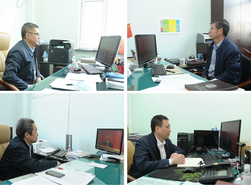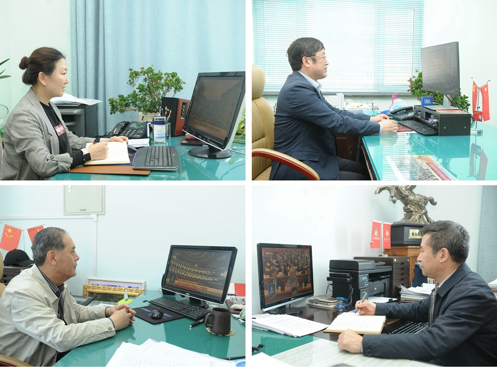 “两会”开幕直播期间,校党委班子成员陈桂芝、齐宏伟、张文治、王刚、李英杰、姜国庆、张树军、吕厚均、陶佰睿、王晓梅、马文辉第一时间在各自办公室分别观看了全国政协十三届三次会议开幕盛况,并在学校办公楼519会议室集中观看了十三届全国人大三次会议开幕直播,认真听取工作报告。大家聚精会神、仔细聆听,认真记录了重点要点。