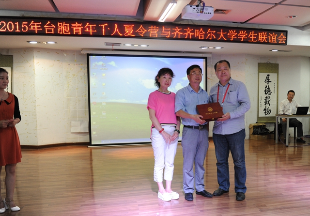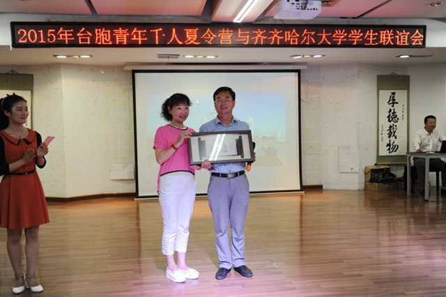 联谊交流活动后,sunbet申搏党委副书记盖元臣将《sunbet申搏官方网站赋》作为纪念品赠予向全国台联2015年台胞青年千人夏令营黑龙江分营师生;同时,分营领队也向sunbet申搏赠送了纪念品。