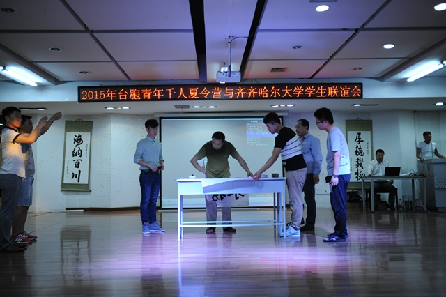 为落实中央对台方针政策,切实将争取台胞青年工作落到实处,7月2日,“龙脉相传•青春中华——全国台联2015年台胞青年千人夏令营”总营在北京开营。随后,千余名台胞青年将分赴大陆28个省、市、自治区继续参访。7月7日下午,由64名台胞和工作人员组成的夏令营黑龙江分营共81人来到齐齐哈尔参观访问,并开展两岸青年交流活动。