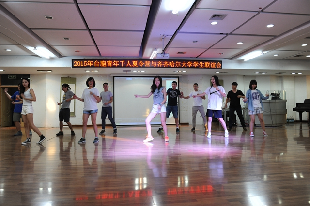 当天晚上,两岸青年大学生举行了文化交流联谊活动中,两岸青年学子载歌载舞,赞美青春,歌颂友谊,携手并肩共叙中华情。
