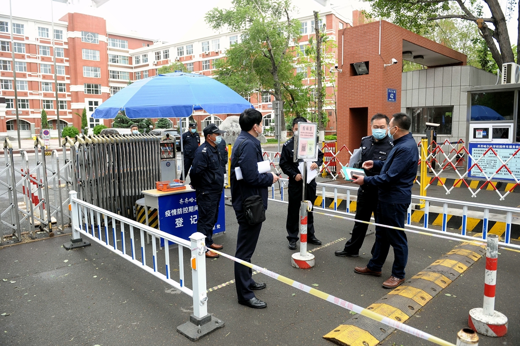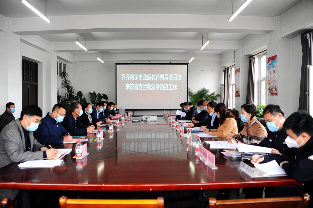 5月25日上午,受省政府教育督导委员会委托,齐齐哈尔市政府副秘书长胡本全、市教育局三级调研员周立山以及市卫健委、市场监管局、市公安局等单位相关工作人员一行10人来到sunbet申搏督查验收复学防疫工作准备情况。校领导陈桂芝、张文治、王刚、李英杰、陶佰睿以及学校办公室、学生工作部(学生处)、保卫处、教务处、后勤管理处、研究生部等部门负责人陪同督查验收。