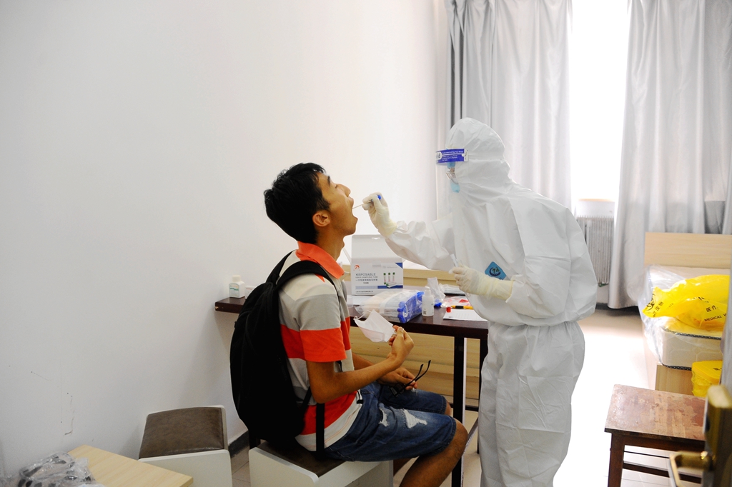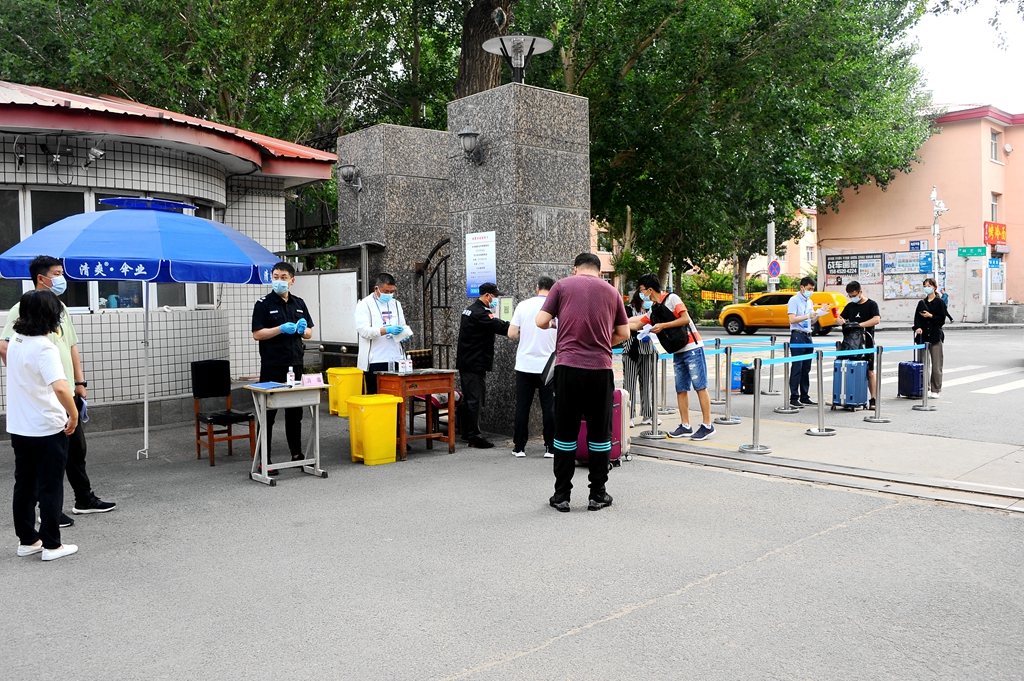 同学们在学生工作部(学生处)、校团委、招生就业处、保卫处等部门工作人员的引导下有序报到,严格执行进校门口“龙江健康码”“完美校园”扫码,工作人员为学生测温、对学生进行手部消毒和行李消杀(对学生自驾进入校园车辆消毒),各学院学生工作干部在校门内迎接返校学生,陪伴学生到隔离观察区楼下,学生二次扫码测温、登记、审核通过,学生进行核酸检测后进入房间等程序。