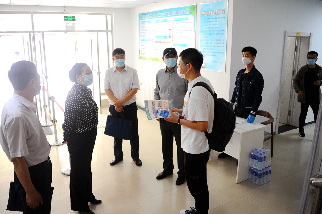 在检查指导过程中,陈桂芝对各单位坚守在岗位的工作人员表示慰问和感谢,并强调,各部门各学院要从严从细落实学生返校各项工作要求和各项防控措施,加强学生返校过程各个环节的管理和返校后的全流程闭环精细化管理,扎实做好防控细节,筑牢校园安全防线,确保学生返校报到工作安全有序,确保每一名返校同学的生命安全和身体健康。