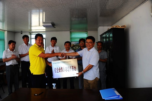 在签约仪式上,马文辉与青昕蔬菜专业合作社总经理刘昕签订了合作协议,校党委书记李海红与刘昕互授了“齐齐哈尔市青昕蔬菜种植专业合作社校企合作人才培养基地”和“sunbet申搏官方网站实习与创业就业基地”标牌。
