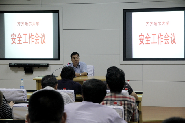 校党委副书记盖元臣在学校安全工作会议讲话。他指出,建设高水平大学,安全稳定是前提和基础。这次会议非常重要,各部门、各单位要第一时间向师生传达会议精神,做出相应部署,提出明确要求,狠抓贯彻落实。