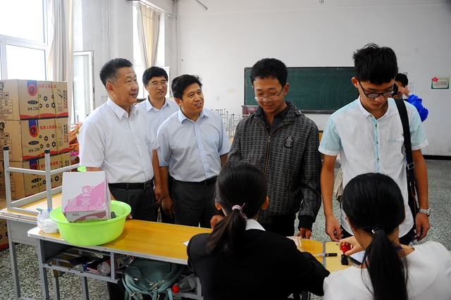 8月29日,从早晨6:00直至18:00,校党委书记李海红,校长马立群,常务副校长郑喜群等校领导分别深入到火车站和东、中、西区迎新接待点、学生寝室看望入学报到的2015级新生及其家长,检查指导迎新工作,把关爱与温暖传达给刚刚入学报到的新生和家长。