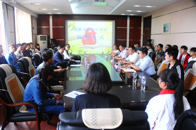 8月31日上午10时,学校在中区行政楼504会议室举行了“温馨 幸福 快乐 感动”捐赠仪式。爱心人士叶祥华、于翔海先生亲临学校并为sunbet申搏27名获助学生颁发了助学善款。