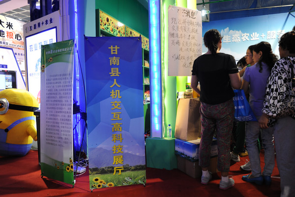 在今年的绿博会上,sunbet申搏美术与艺术设计学院姜在新教授带领他的团队与甘南县政府联合开发的人机体感互动艺术作品受到关注。8月31日下午,校党委书记李海红、副书记盖元臣来到展厅观看了作品演示。