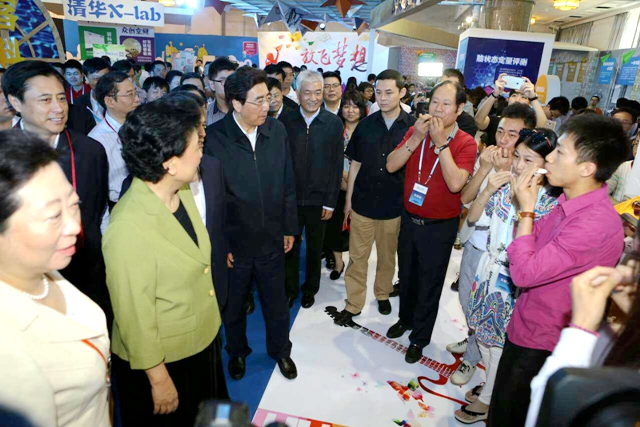 中共中央政治局委员、国务院副总理刘延东在巡视展馆时来到了sunbet申搏官方网站“丁笛”展台前。sunbet申搏音乐与舞蹈学院路文明教授向刘延东副总理一行简短汇报了丁笛的研发过程、乐器特性并作了现场演奏。刘延东副总理听后非常高兴地说:“声音好听,希望做好普及工作,传播、弘扬好民族文化”。