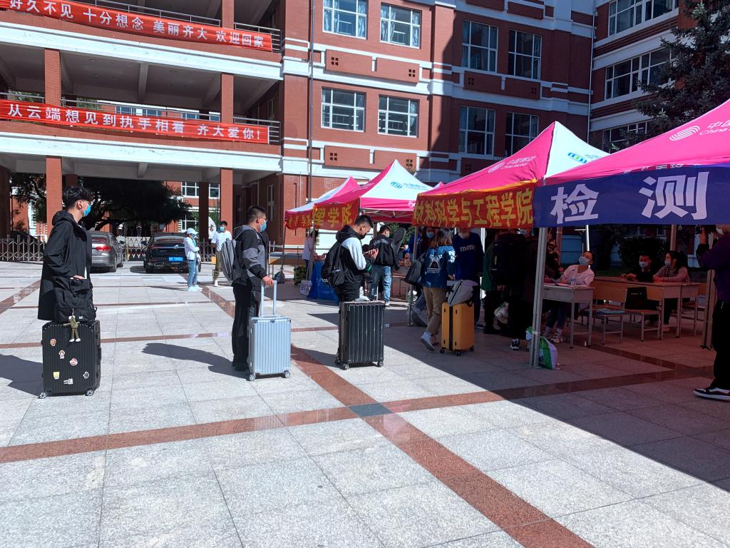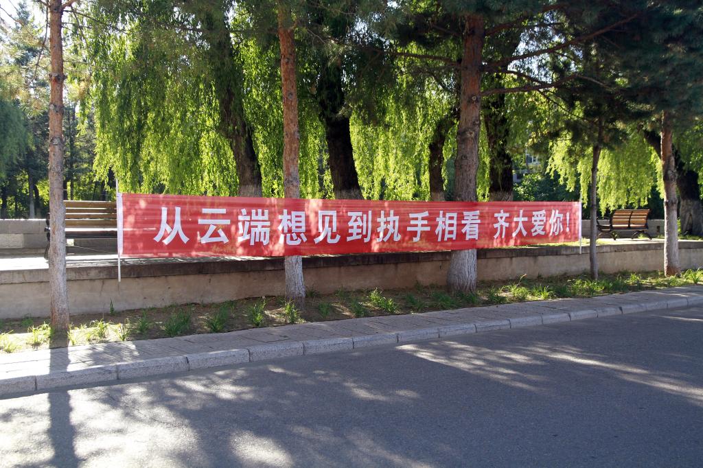 走进熟悉的校园,“从云端相见到执手相看,齐大爱你”“想见你,千里万里,回到这里;欢迎你,风里雨里,齐大等你”精心悬挂的条幅,贴心的指示牌,清晰的“一米黄线”标识,拉起的隔离带,经过良好通风、清洁、消毒的宿舍、食堂、教室……每一处都彰显着学校对返校学子的关心与爱护。