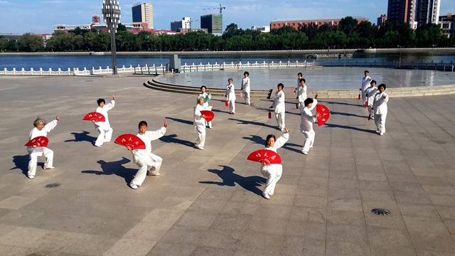 目前,越来越多的离退休老干部充分感受到了太极拳的魅力和健身效果,纷纷踊跃加入到全民健身的太极行列中来,浓厚了劳动湖畔的文化氛围,日积月累地感染着劳动湖畔早起晨练的市民,潜移默化地引领着鹤城老年人的生活方式乃至审美方式。