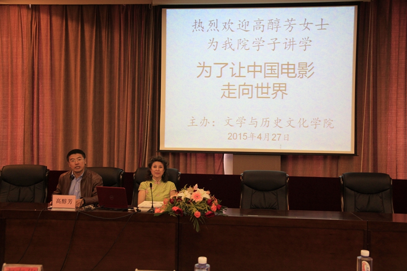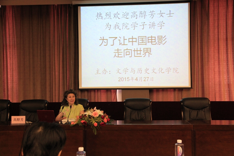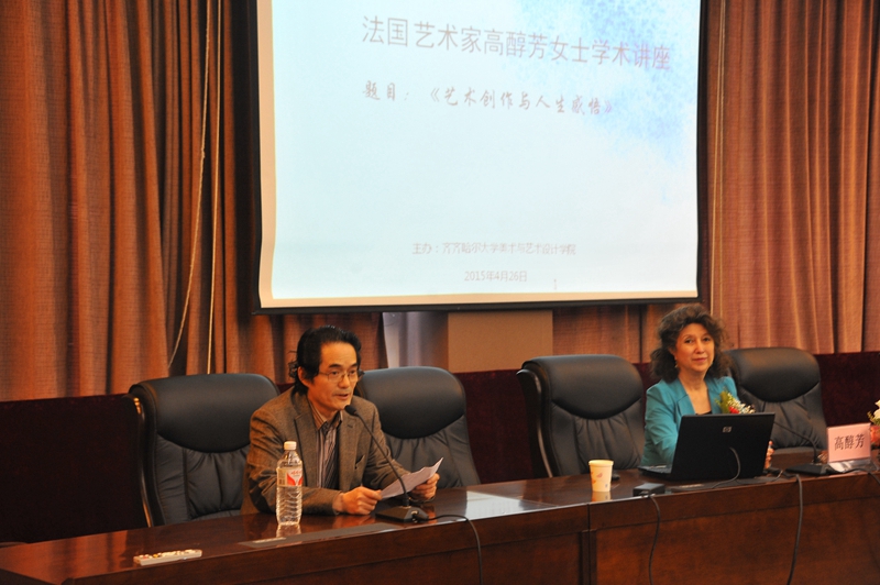 4月27日上午10时,法籍华裔女画家高醇芳《让中国电影走向世界》主题讲座在齐大德润大厦4楼报告厅举行。此次讲座由文学与历史文化学院承办,副院长肖国栋教授主持了艺术讲座。