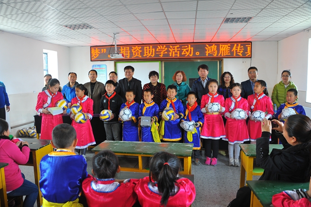涓涓细流汇成大海,点滴奉献铸就大爱。“鸿雁工程”18年来不间断的付出影响了很多人,佟赟康本是一名哈拉达族小学的学生,在“鸿雁工程”的资助与爱心的影响下,现在也加入到这个队伍中来,为“鸿雁工程”注入了新鲜的血液。通过这次的捐资助学活动,不仅实现了大学生与小手们的零距离接触,更加提高了大学生的责任心,增强了责任意识。鸿雁因爱而生,鸿雁人因爱而美,希望在“鸿雁工程”的带动下,会有更多的人懂得奉献的意义,明白自己的社会责任感和使命感。