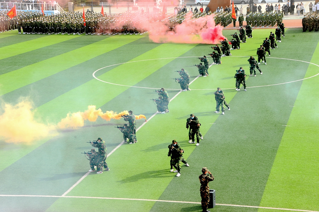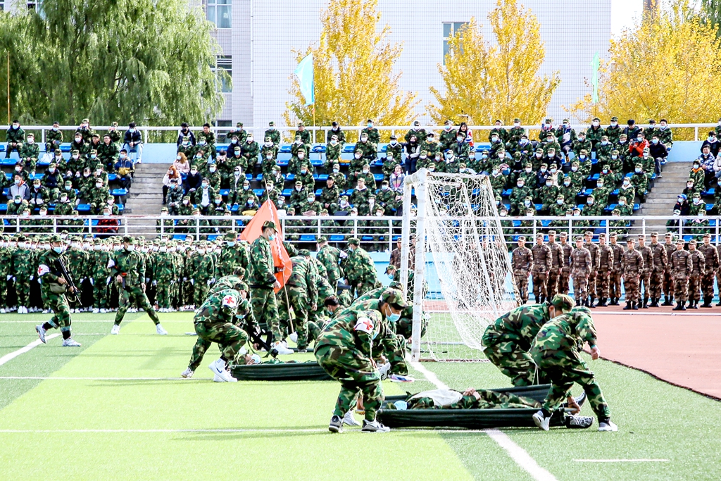 五营(体育学院)为大会做战术基础动作和战场救护表演