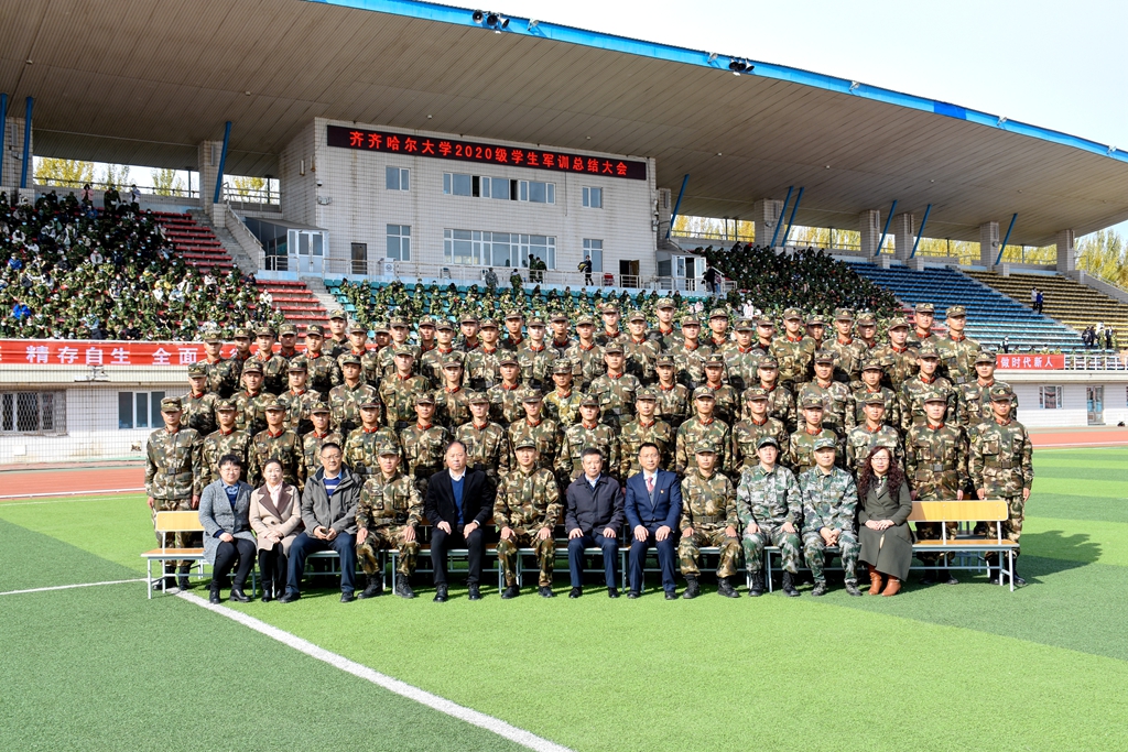 军训总结大会结束后,与会校领导及军训团司、政、后领导成员与武警齐齐哈尔支队官兵合影留念。