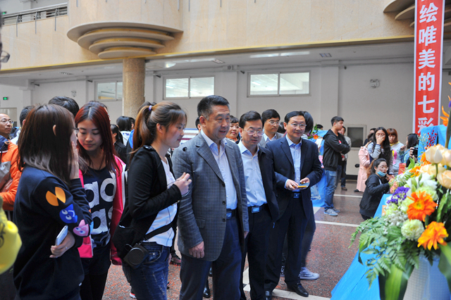 校长马立群,校党委副书记盖元臣,校党委常委、常务副校长郑喜群,校党委常委、副校长李英杰到现场观看作品,听取参赛学生关于作品创意的汇报,并给予好评和鼓励。