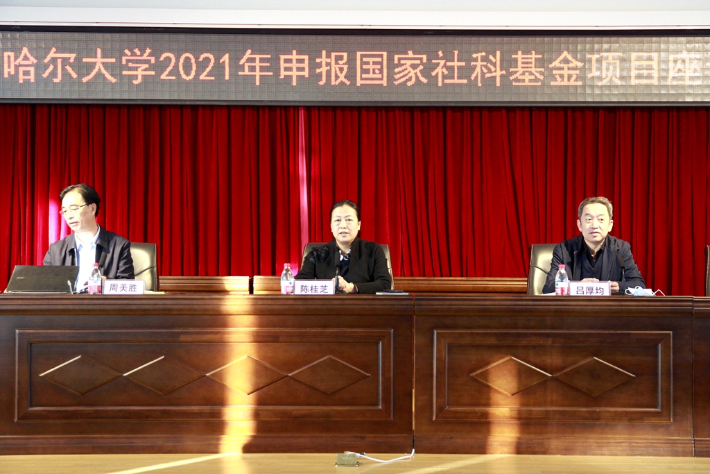 12月1日上午,学校在林校区求实楼五楼会议室召开2021年申报国家社科基金项目座谈会。省委宣传部二级巡视员、省哲学社会科学办公室主任周美胜,黑龙江大学原副校长丁立群教授,校党委书记陈桂芝,副校长吕厚均出席会议,科研处及各相关学院申报国家社科基金的教师、博士及青年骨干教师参加座谈会。会议由陈桂芝主持。