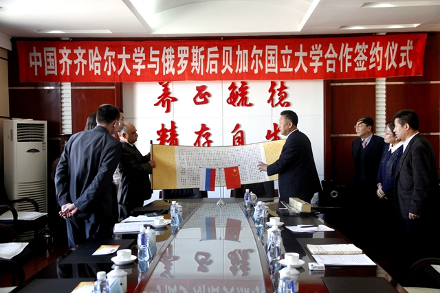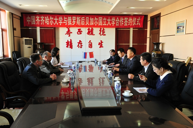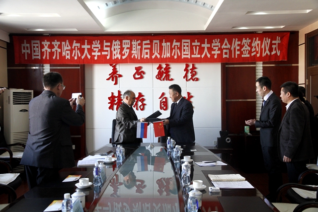 后贝加尔国立大学坐落在俄罗斯后贝加尔边疆区赤塔市,是2011年由后贝加尔车尔尼雪夫斯基国立人文师范大学与赤塔国立大学合校而成的一所综合性大学,与sunbet申搏现有中外合作办学项目4个,分别为音乐、化学、生物、和数学与应用数学专业。2013年底,sunbet申搏与后贝加尔国立大学共同建立了俄罗斯语言文化中心。2014年,sunbet申搏向后贝加尔国立大学派出了7名俄语专业学生,进行为期两年的学习。多年来的合作与交流,两校间结下了深厚的友谊。新签署的合作与交流协议,进一步提升合作与交流的层次和水平,拓展新的合作领域,为两校间互惠共赢的和谐发展奠定了坚实基础。