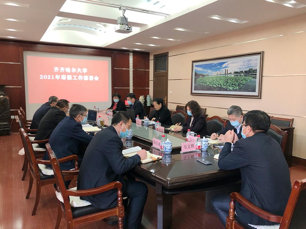按照学校党委工作部署,1月13日下午,学校在办公楼504会议室召开2021年寒假工作部署会。会议采取线上线下相结合的方式进行,学校党委领导班子成员在主会场参会,副处级以上干部以在线视频方式参会。会议的主题是,进一步贯彻落实学校第二次党代会精神,总结2020年重点工作完成情况,部署2021年寒假工作,确保“十四五”开好局、起好步。