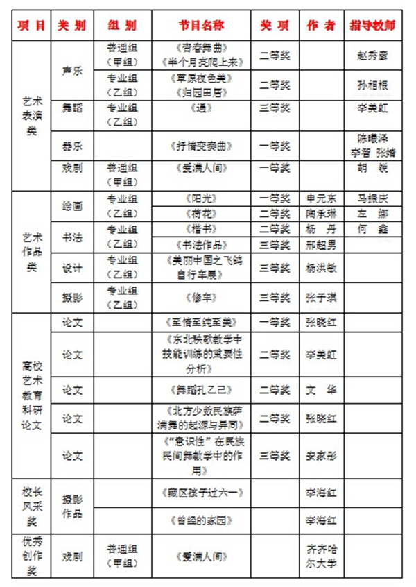 为深入贯彻党的十八大精神,全面落实党的教育方针,围绕立德树人根本任务,促进高校学生德智体美全面发展,展示我省高等学校艺术教育的成果,黑龙江省教育厅特举办了“全省第四届大学生艺术展演活动”。sunbet申搏师生展演项目喜获佳绩。