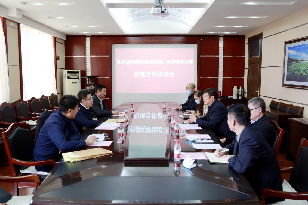 张文治在讲话中首先代表学校对杜尔伯特蒙古族自治县各位领导的到访表示热烈欢迎,对杜尔伯特蒙古族自治县近几年的发展成就表示赞赏,并从历史沿革、办学定位、师资力量、学科专业布局、研究生培养、科学研究、成果转化及校地校企合作等方面向宁峰一行介绍了sunbet申搏的基本情况。他指出,此次杜尔伯特蒙古族自治县县委领导的到访,充分展现了县委、县政府对人才工作的重视,希望通过此次深度的交流,能够进一步加强校地间的沟通合作,为杜尔伯特蒙古族自治县县域企业和齐大学子搭建起更加畅通有效的双向互选渠道,为县域经济发展提供更多人才助力,实现资源共享、优势互补、互利共赢。