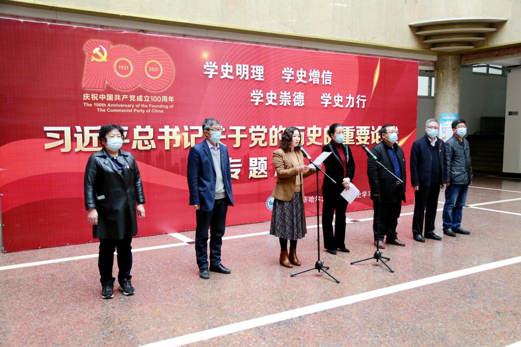 学校党委书记、党史学习教育领导小组组长陈桂芝代表学校党史学习教育领导小组讲话。