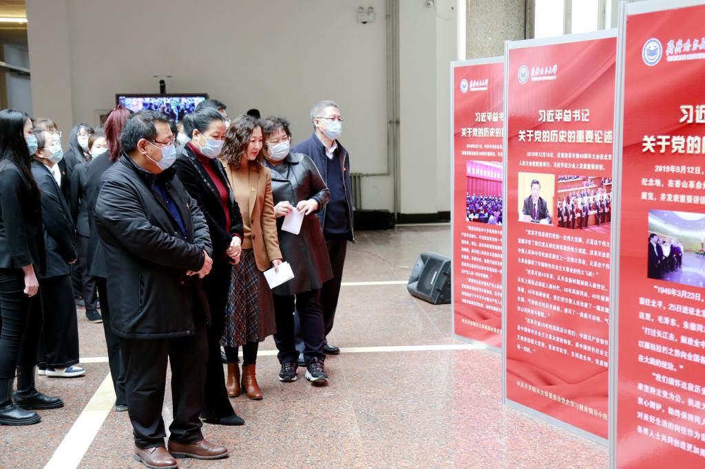 “习近平总书记关于党的历史重要论述专题展”由学校党史学习教育领导小组主办,学校党史学习教育领导小组办公室(宣传部)、图书馆承办,共展出21块展板,精选了习近平总书记2012年11月至2021年3月期间关于中国共产党历史的重要论述20篇。