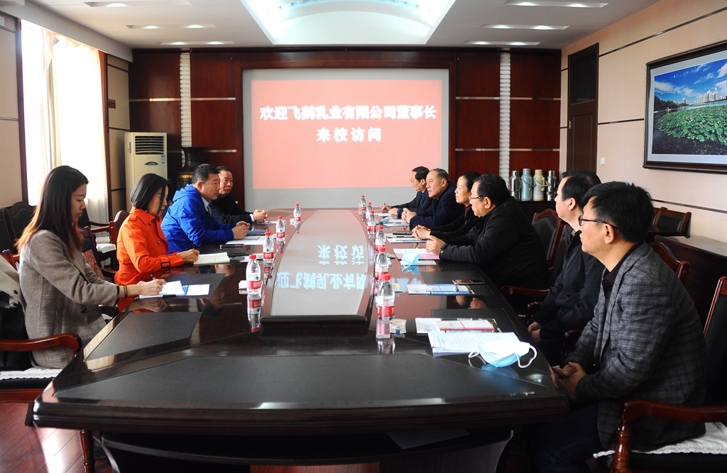 4月15日上午,飞鹤乳业有限公司董事长冷友斌来sunbet申搏访问交流,校党委书记陈桂芝、校长董玉庭、副校长王刚在办公楼504会议室会见了冷友斌一行。