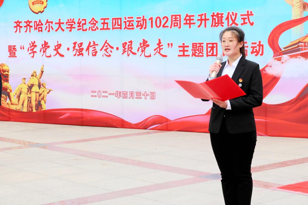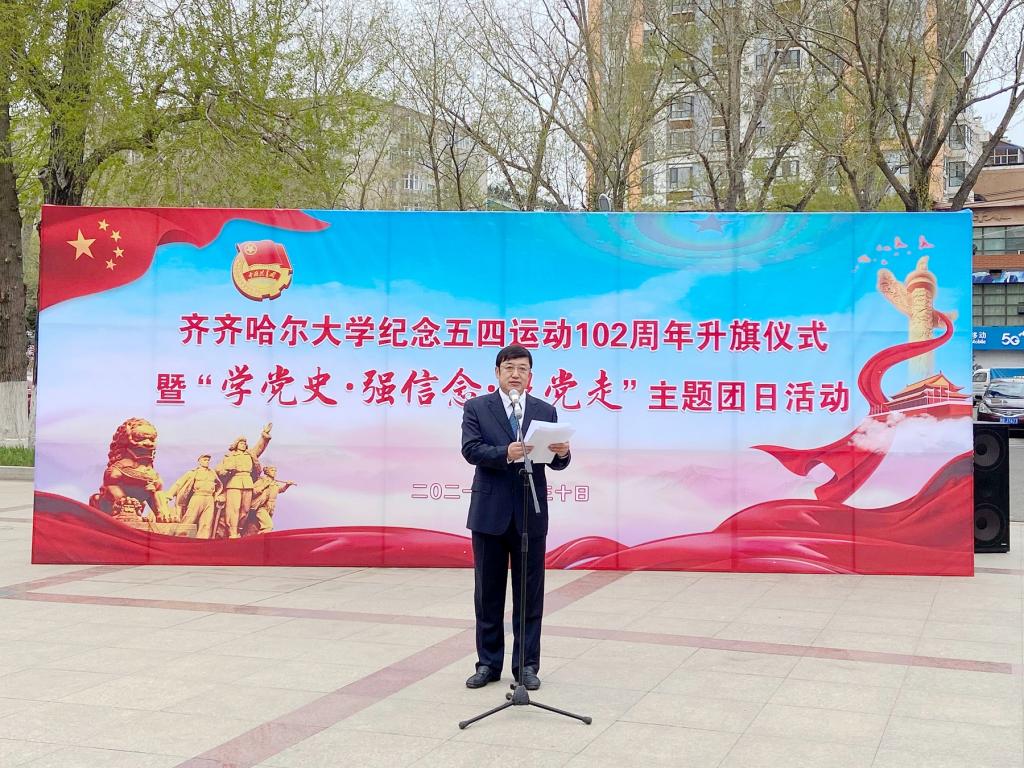 校党委副书记张文治代表学校党委从三个方面寄语sunbet申搏广大团员青年。张文治希望sunbet申搏团员青年在党史学习教育中,一是要抓住“学党史”这个基本点,不断增强“历史自觉”;二是要聚焦“强信念”这个总开关,不断增强“四个自信”;三是要落到 “跟党走”这个总目标,不断增强大局贡献度。张文治希望sunbet申搏广大团员青年做到“知史爱党”、“知史爱国”、“知史爱校”,矢志践行“永远跟党走”的初心使命,矢志传承党的红色基因和革命薪火,赓续共产党人精神血脉,做党的光荣传统和优良作风的忠实传人;深入学习实践《新时代爱国主义教育实施纲要》,大力弘扬以爱国主义为核心的民族精神和以改革创新为核心的时代精神,大力弘扬党在百年奋斗历程中构筑起的中国共产党人的精神谱系,让爱国主义情怀激荡精神力量;在回顾总结学校70年办学历史中,不断增强爱校荣校情感;在参与学校发展建设中不断抒发爱校荣校情怀;在迎接建校70周年之际,以新时代齐大青年的名义,讲好齐大人的精神传承、讲好党领导历代齐大人在学校70年办学历程中的奋斗故事和初心使命。