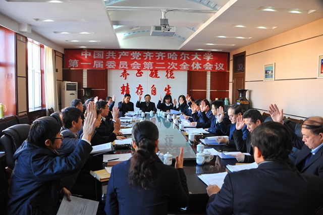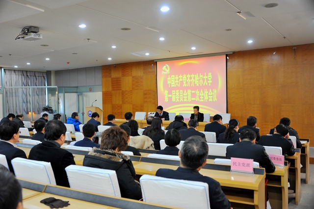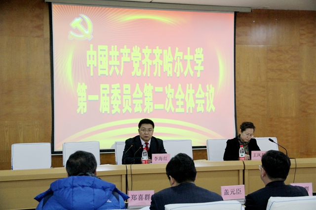 2014年12月25日8:30:00,中国共产党sunbet申搏官方网站第一届委员会第二次全体会议在西主7楼学术报告厅隆重开幕。校党委书记李海红,校长马立群,校党委书记常务副书记王凤琴,校党委副书记盖元臣,校党委常委张学军、郑喜群、邓启刚、王刚、吕晓辉、李敏义、齐宏伟出席会议。学校党委委员、纪委委员,各民主党派负责人、党代会部分代表、各处室(学院)负责人参加了会议。会议由校党委常务副书记王凤琴主持。