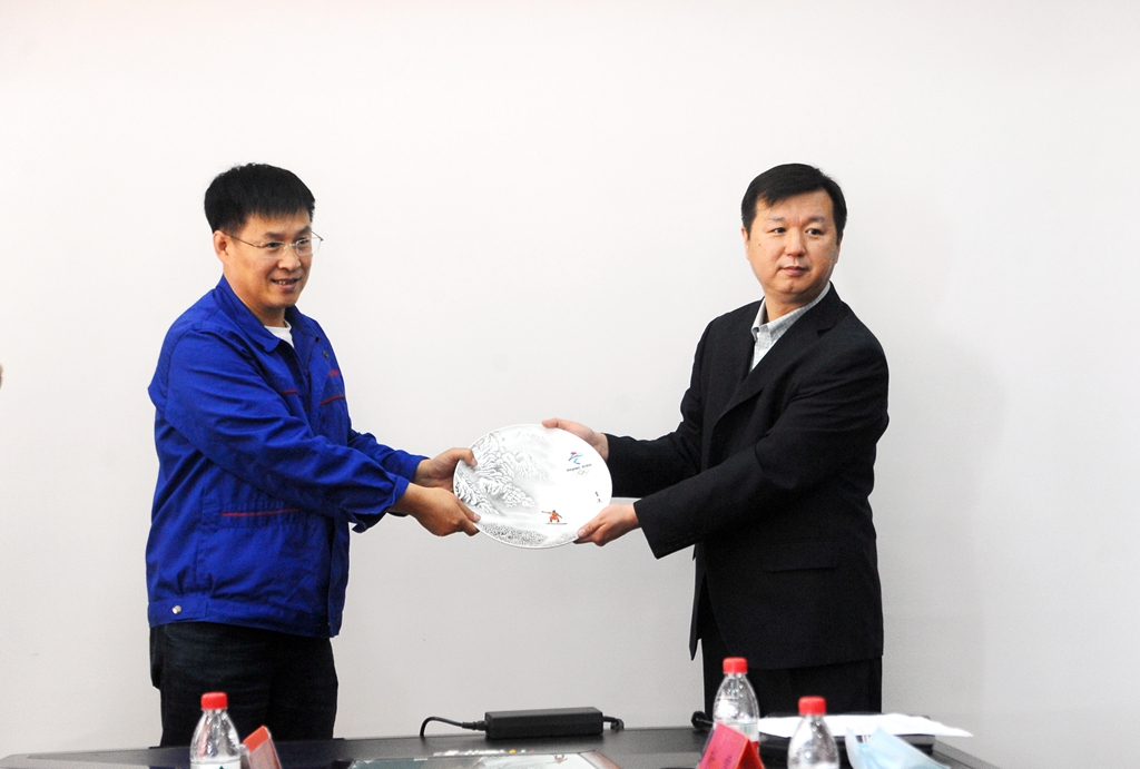 李奇楠代表学校接受了杭奥电梯捐赠的冰球器材并向杭奥电梯赠送了冬奥纪念礼品。