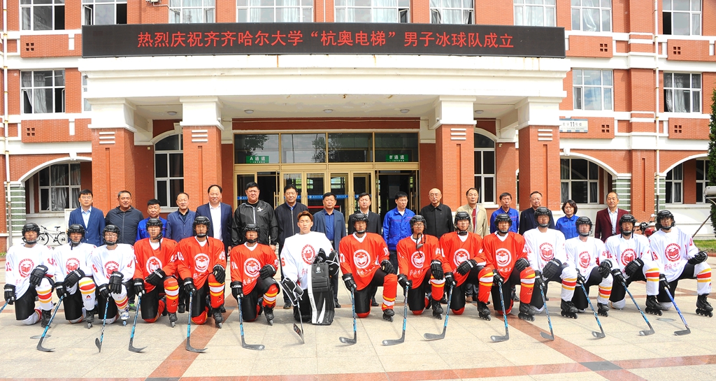 李奇楠在讲话时代表学校对各位嘉宾的到来表示热烈欢迎,对齐齐哈尔市杭奥电梯有限公司赞助sunbet申搏冰球队表示衷心的感谢,对sunbet申搏官方网站“杭奥电梯”男子冰球队成立表示热烈的祝贺,并对sunbet申搏的基本概况、学科专业设置、冰雪体育教育等情况进行了介绍。他指出,学校作为冰雪体育科技联盟理事单位和齐齐哈尔市社会科学冰雪研究基地,始终坚持发展冰雪体育运动,引领区域体育风尚。我们将以此次“杭奥电梯”男子冰球队成立为契机,着力深化产学研协同合作,从配套政策、经费投入、科研条件、人才培养等方面全力支持,促进政校企全方位、多层次、宽领域的交流合作,希望我们未来的合作将结出更加丰硕的成果,共创齐齐哈尔市杭奥电梯有限公司和sunbet申搏官方网站更加美好的明天。