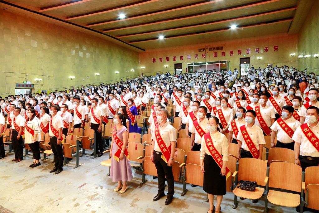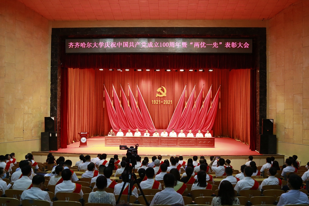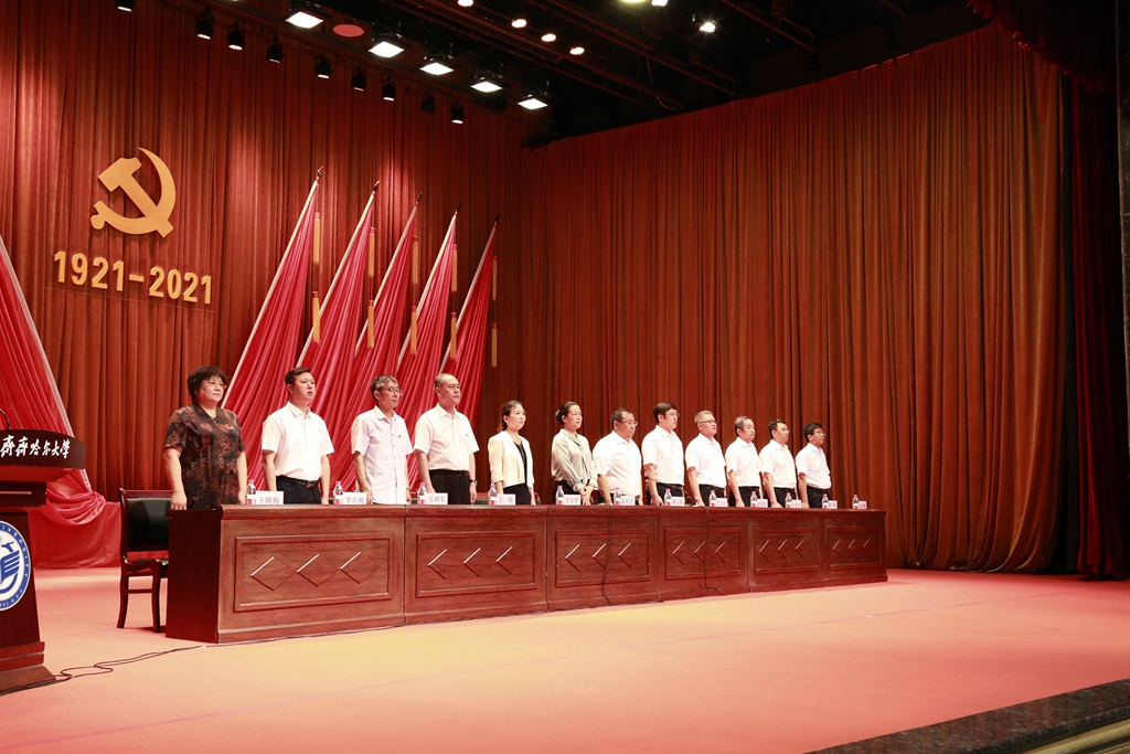 6月30日下午,sunbet申搏官方网站庆祝中国共产党成立100周年暨“两优一先”表彰大会在文化宫隆重召开。校领导陈桂芝、董玉庭、齐宏伟、张文治、王刚、姜国庆、张树军、吕厚均、李奇楠、陶佰睿出席大会,全校副处级以上干部、“两优一先”获得者及党史知识竞赛获奖集体代表、党支部书记、离退休干部、民主党派负责人及党员代表参加大会。会议由校长、党委副书记董玉庭主持。