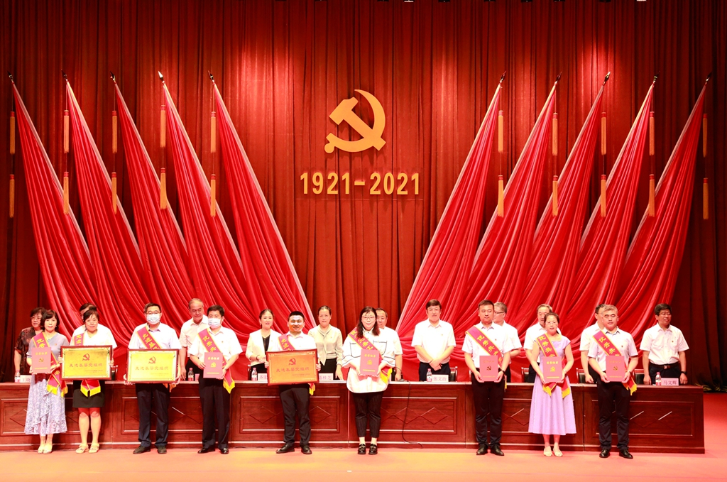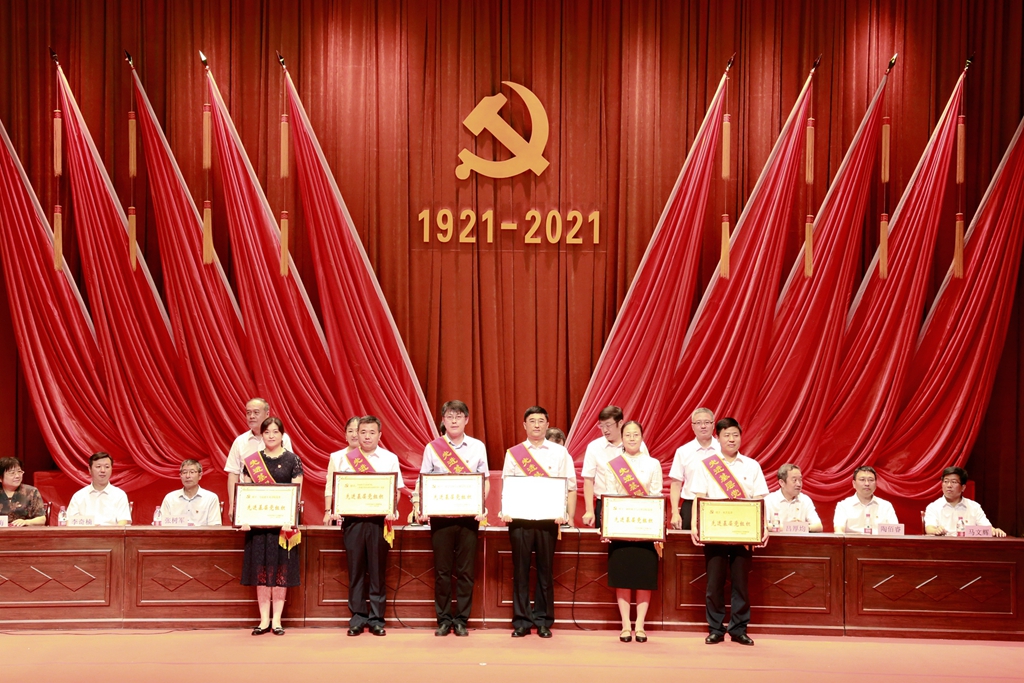 董玉庭在讲话中指出,中央、省委、市委分别对“两优一先”进行了表彰,党中央隆重举行了庆祝中国共产党成立100周年“七一勋章”颁授仪式,今天我们表彰了全校涌现出的先进基层党组织和优秀个人。希望全校各级党组织和广大党员、干部要向各级党组织表彰的“两优一先”学习,尤其是要学习“七一勋章”获得者坚定信念、践行宗旨、拼搏奉献、廉洁奉公的高尚品质和崇高精神,以我们身边“先优”为榜样,继承和发扬党的优良作风和光荣传统,在传承红色基因、坚定信仰信念、践行党的宗旨、强化使命担当、踏实勤勉敬业等方面持续发挥先锋模范作用。