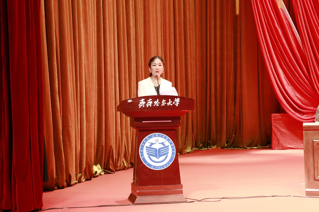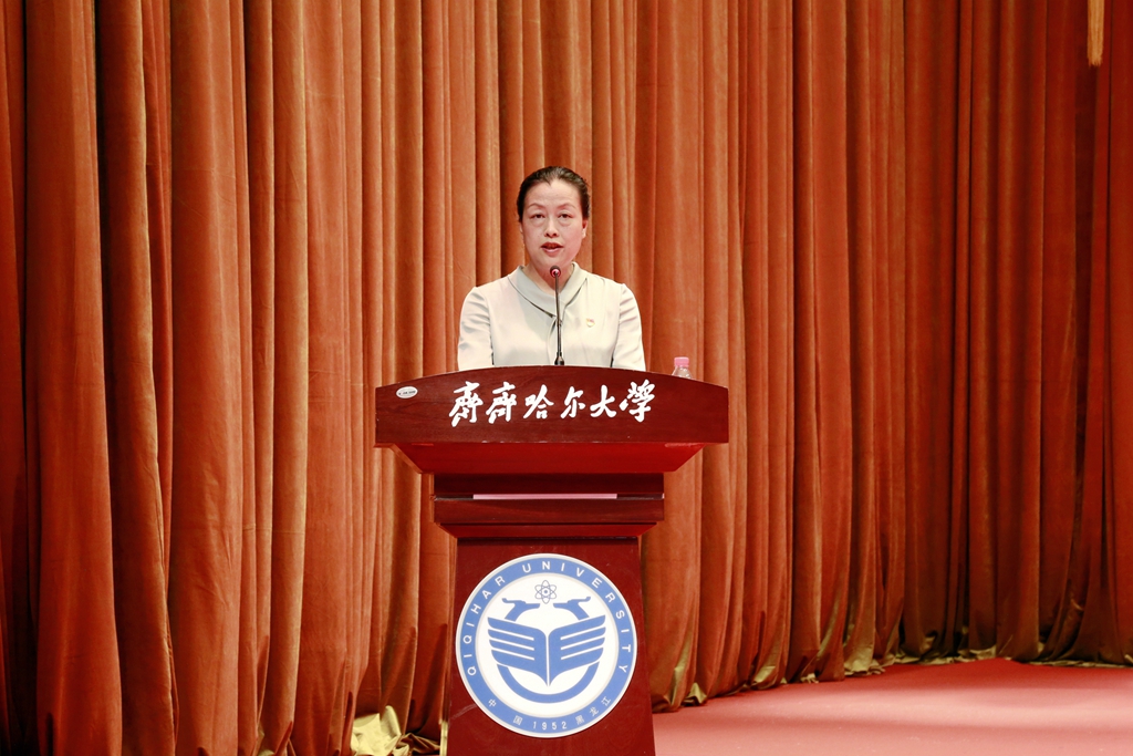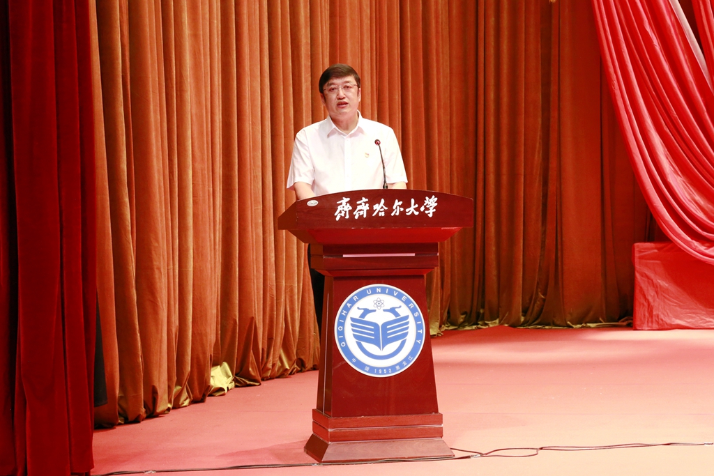 陈桂芝指出,让我们更加紧密地团结在以习近平同志为核心的党中央周围,高举中国特色社会主义伟大旗帜,牢记初心使命,坚决扛起为党育人、为国育才的政治责任,始终胸怀“两个大局”、心系“国之大者”,坚持不懈推进党的建设新的伟大工程,大力弘扬中国共产党人坚定信念、践行宗旨、拼搏奉献、廉洁奉公的高尚品质和崇高精神,守正创新砥砺前行,奋发奋进创新创造,奋力开拓龙江高质量教育体系齐大路径,永远跟党走,奋进新时代,为党和人民的事业再立新功、再创辉煌!