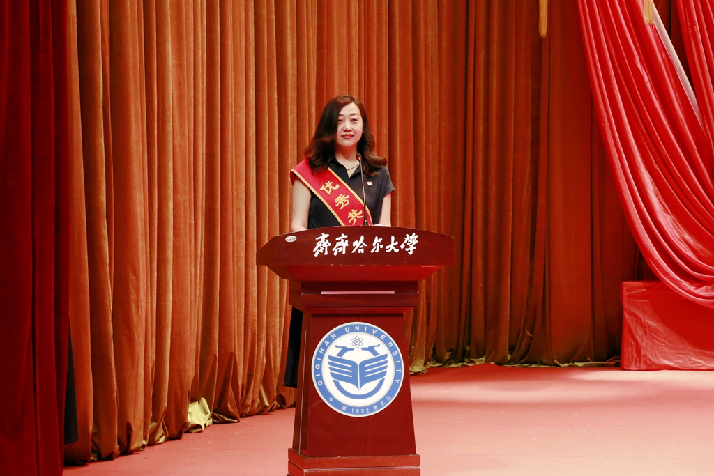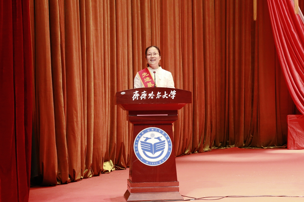 优秀党务工作者代表、化学与化学工程学院党委副书记马艳萍发言