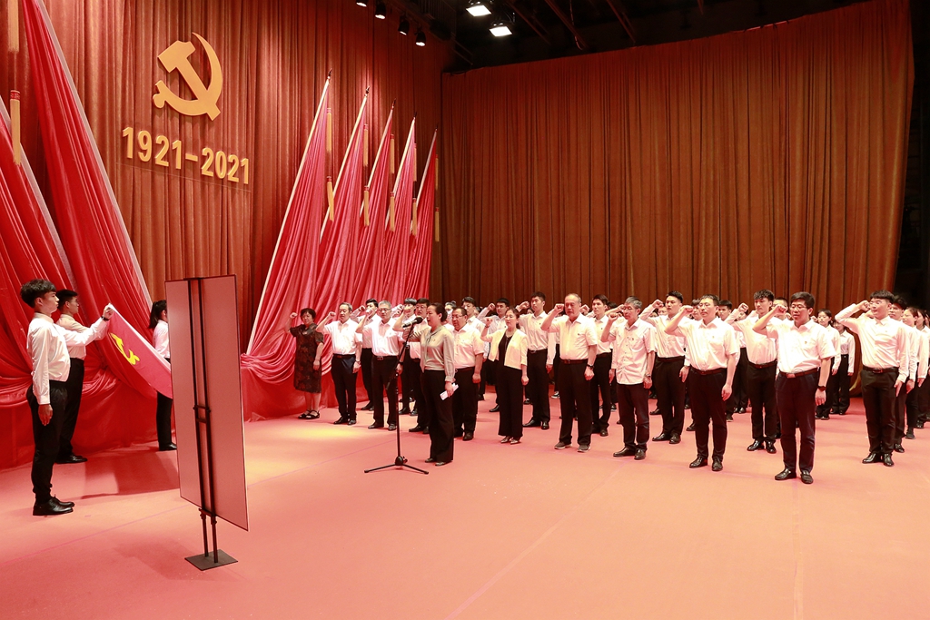 在陈桂芝的领誓下,新党员进行了入党宣誓、老党员重温了入党誓词。