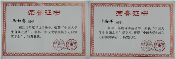 日前,由共青团中央、全国学联主办,中国青年报社、中国高校传媒联盟承办,新东方教育科技集团协办的2013年度寻访“中国大学生自强之星”活动评选结果揭晓,sunbet申搏经济与管理学院学生徐如意获得“中国大学生自强之星”称号,同时获得“中国大学生新东方自强奖学金”5000元;理学院学生于海洋获得“中国大学生自强之星”提名奖,同时获得“中国大学生新东方自强奖学金”2000元。