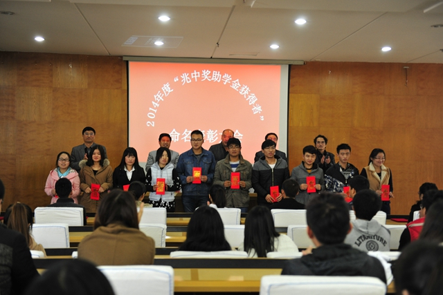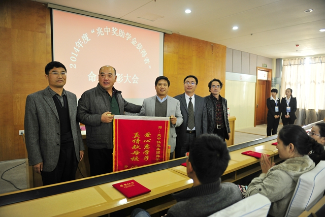 校、处、院领导与企业负责人为2014年兆中奖学金获得者颁发证书及奖学金。