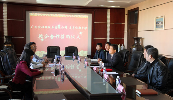 学生指导中心主任杨国志、化学与化学工程学院院长郭祥峰、轻工与纺织学院院长赵欣、机电工程学院常务副院长王世刚、学生指导中心副主任王志飞,广西金桂浆纸业有限公司副理吴荣鑫、广西金桂浆纸业有限公司人力资源处副课助理任家伟、广西金桂浆纸业有限公司经管部课员张丽华出席了签约仪式。