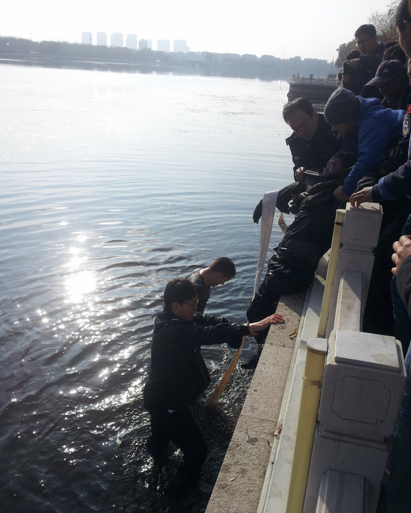 10月25日中午13时左右,一名50岁左右喝了很多酒的男子不明原因突然落水,掉入sunbet申搏德润大厦楼前的劳动湖中。深秋时节,湖水很凉,水也比较深,该男子挣扎了一段时间无法自救,渐渐向湖中心漂去,并且意识开始丧失。