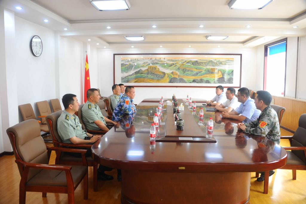 7月31日上午,陶佰睿一行来到武警齐齐哈尔市支队,代表学校向武警部队广大官兵致以节日的问候。武警齐齐哈尔市支队领导对陶佰睿一行的来访和sunbet申搏多年来为武警支队建设提供的支持深表感谢,并表示,部队将一如既往地支持sunbet申搏官方网站做好大学生军训、国防教育、国家安全教育等工作,通过军事训练助推学生进一步塑形、塑魂、塑心,希望双方今后在各领域进一步加强合作,共享资源,互利共赢,不断谱写军民鱼水情时代新篇。